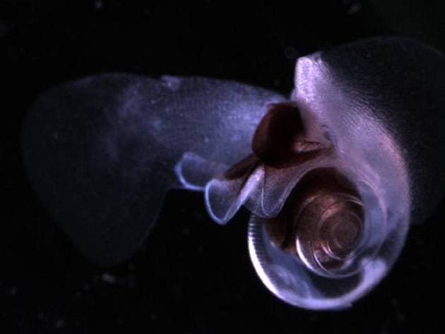 Esta especie denominada Thecosomata es técnicamente un caracol de mar, pero se le conoce habitualmente como mariposa de mar, ya que posee la belleza de estas y además “vuela” en el agua, es decir, se desplaza en el mar batiendo sus “alas”. Su tamaño nunca llega a ser mayor al de unos pocos centímetros. Su caparazón es casi transparente y mide menos de un centímetro, por lo que es muy difícil de avistar.