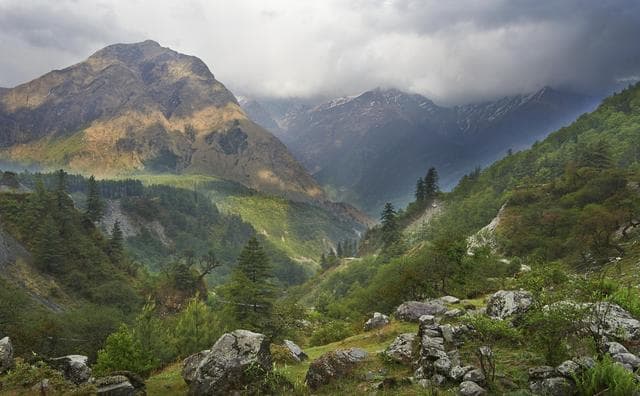 Debido a la original topografía del Himalaya, a lo largo del tiempo se han desarrollado diversos sistemas ecológicos. Al pie de la elevación se extienden bosques tropicales, en el medio, bosques subtropicales de árboles caducifolios y ya en las alturas, podemos encontrarnos prados y forestas de coníferas.