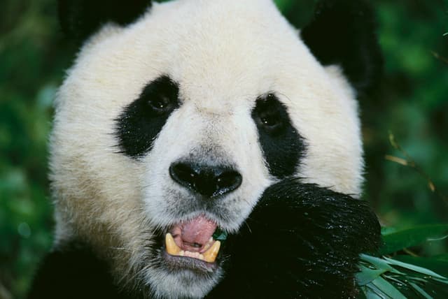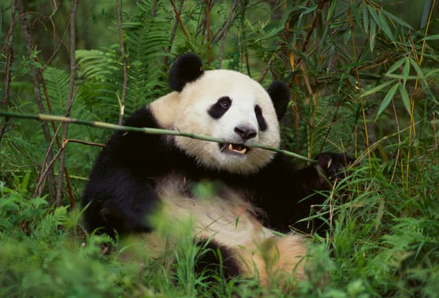 Un panda gigante se alimenta básicamente de tallos de bambú. Como su sistema intestinal es limitado, necesita estar sentado 15 horas cada día ingiriendo dicho producto.