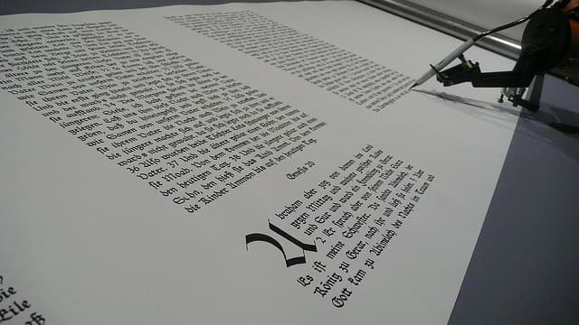 La Biblia, un libro que puede definirse como el paradigma de nuestra civilización y el libro más importante de toda la historia, ha atravesado todas las etapas de la historia de la imprenta en carne propia, por lo cual ha sido testigo de lo que es nacer de diferentes maneras, aunque seguramente nunca se habría imaginado lo que sería nacer en manos de un robot.