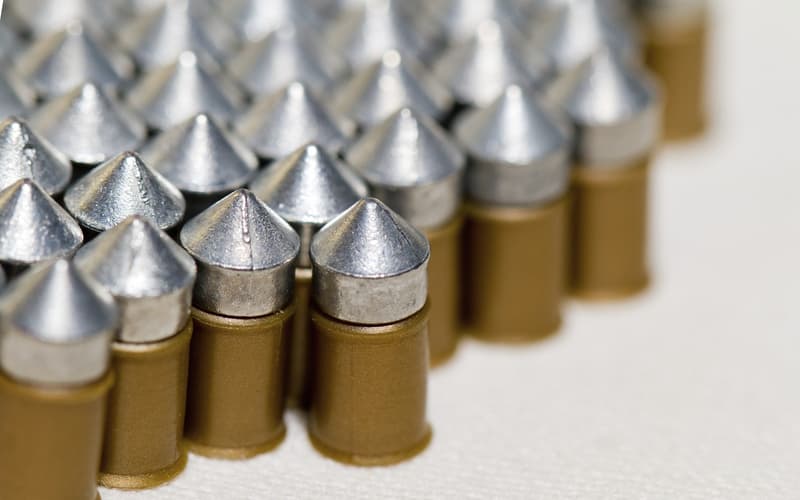 La bala está compuesta por dos partes principales, la munición o cabeza y el tubo con el material explosivo. En la parte posterior de la bala se encuentra la descripción de la misma, esto en su borde exterior, mientras que en su centro se encuentra el punto donde el percutor golpea para comenzar la ignición de la bala. Una vez que se golpea ese punto la bala sale disparada dejando el cartucho vacío dentro de el tambor del revólver o pistola, dependiendo del caso.