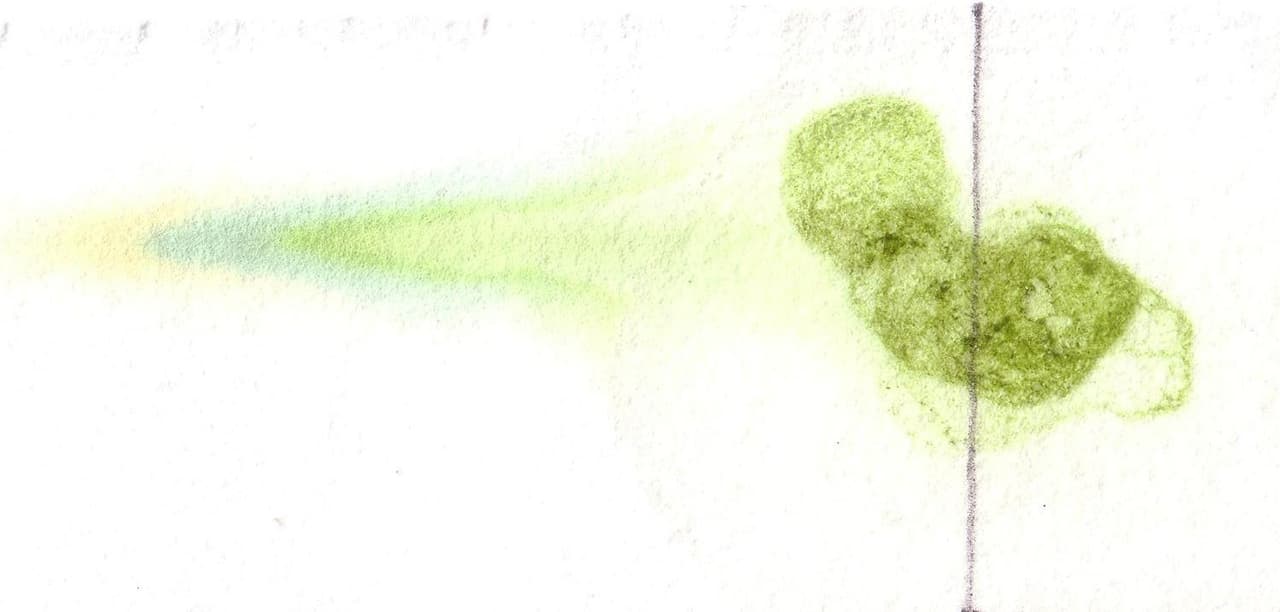 - Poner varias manchas una encima de otra de la mezcla de hojas machacadas y bencina filtrada en un extremo de una tira de papel de filtro. Dejar secar.
