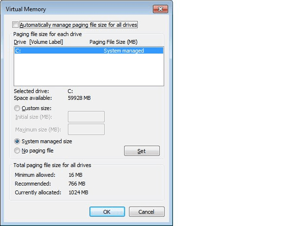 El archivo de paginación te permite usar una porción del disco duro como memoria RAM. Por defecto este archivo es de 1.5 veces la memoria RAM, pero no siempre es el tamaño óptimo. Un par de cosas que se pueden hacer es colocar el archivo de paginación en una partición del disco duro separada para así reducir la carga de lectura/escritura del archivo.