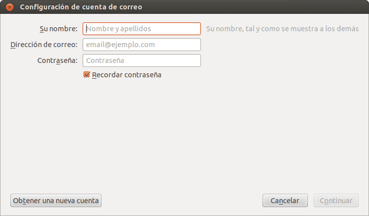 Hecho esto la ventana cambiará y solicitará nuestro nombre, nuestro usuario y nuestra contraseña para comenzar a administrar la nueva casilla de correo. Una vez que llenamos los campos y aceptamos Thunderbird comenzará a transferir nuestros correos a la PC si es que así lo deseamos.