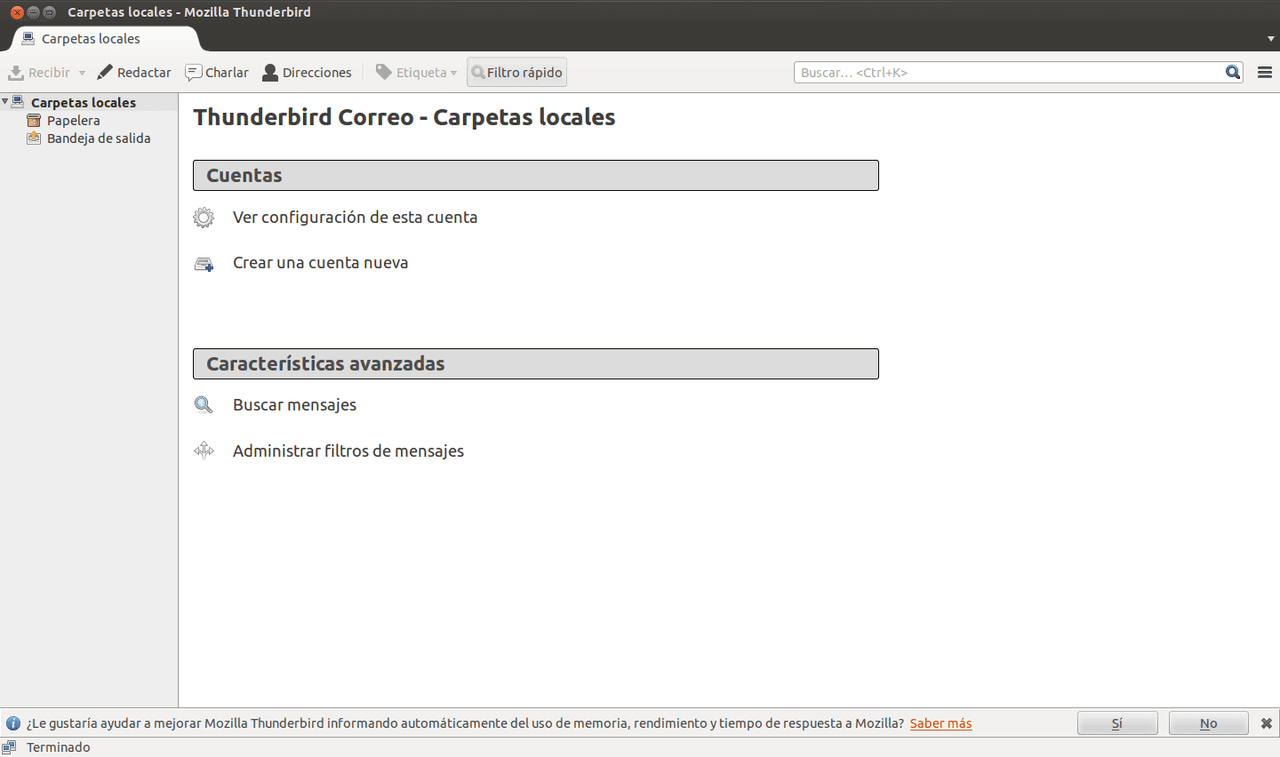 Dejen lo anterior a mano, y prosigamos a descargar Thunderbird desde este enlace. Culminada la descarga e instalación del cliente, proseguiremos a la configuración del mismo: