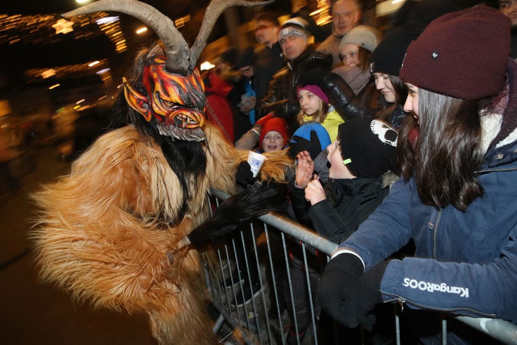 La historia se transformó hasta convertirse en una tradición en la que los hombres de Austria, Alemania, Hungría, Eslovenia y la República Checa se emborrachan y se disfrazan de Krampus para desfilar y asustar niños en la calle.