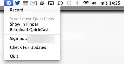 Verás que en la barra superior de la pantalla de Mac OS X, aparece el icono de QuickCast. Haz clic sobre él con el botón derecho del ratón y selecciona Sign In. Necesitamos crear una cuenta para poder subir nuestros screencast a la web.