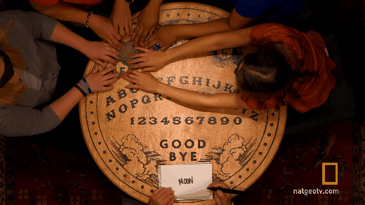 National Geographic quiso descubrir qué ocasionaba que el puntero del tablero se moviera "por su cuenta". Así que llevó a cabo un experimento para ver qué sucedía si los participantes en una sesión espiritista manipulaban la ouija con los ojos vendados. Cuando las personas veían, las respuestas del tablero fueron verdaderas y precisas. Pero cuando no veían, el puntero señaló espacios vacíos y partes aleatorias sin sentido.