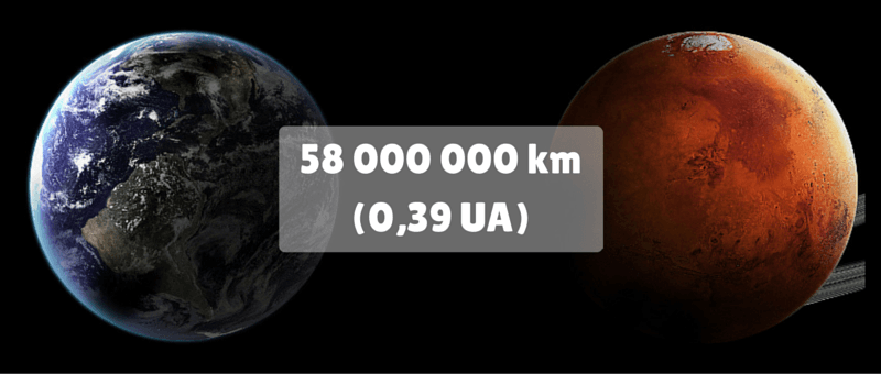 - Distancia entre la Tierra y Marte: 58 millones de km (0,39 UA)