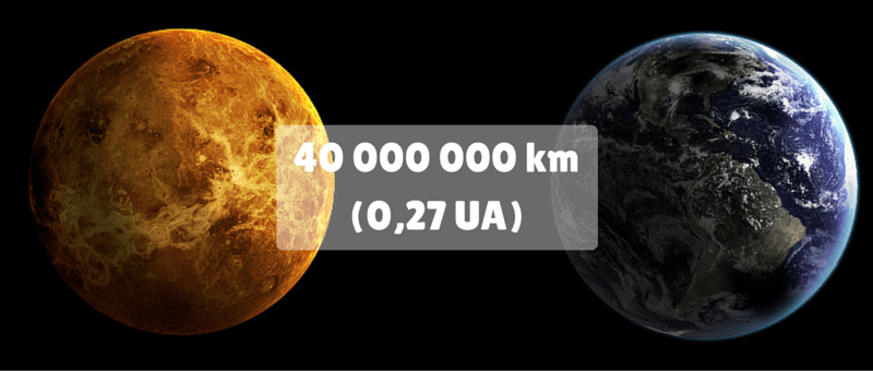 - Distancia entre Venus y la Tierra: 40 millones de km (0,27 UA)