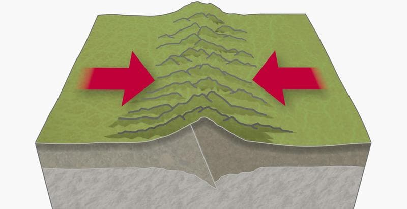 - Límites convergentes: Cuando los límites de dos placas chocan pueden suceder diferentes cosas. Por ejemplo: si choca una placa oceánica con una terrestre se forma una fosa sobre el agua y una cadena montañosa en la tierra, un ejemplo de esto es la cordillera de los Andes. Por otro lado si chocan dos placas oceánicas se forman islas, como el caso de Japón. Y en el caso de que choquen dos placas tectónicas terrestres el resultado son las cadenas montañosas como la del Himalaya. Además de esto cuando hay choque de placas la presencia de sismos y terremotos es bastante notoria.