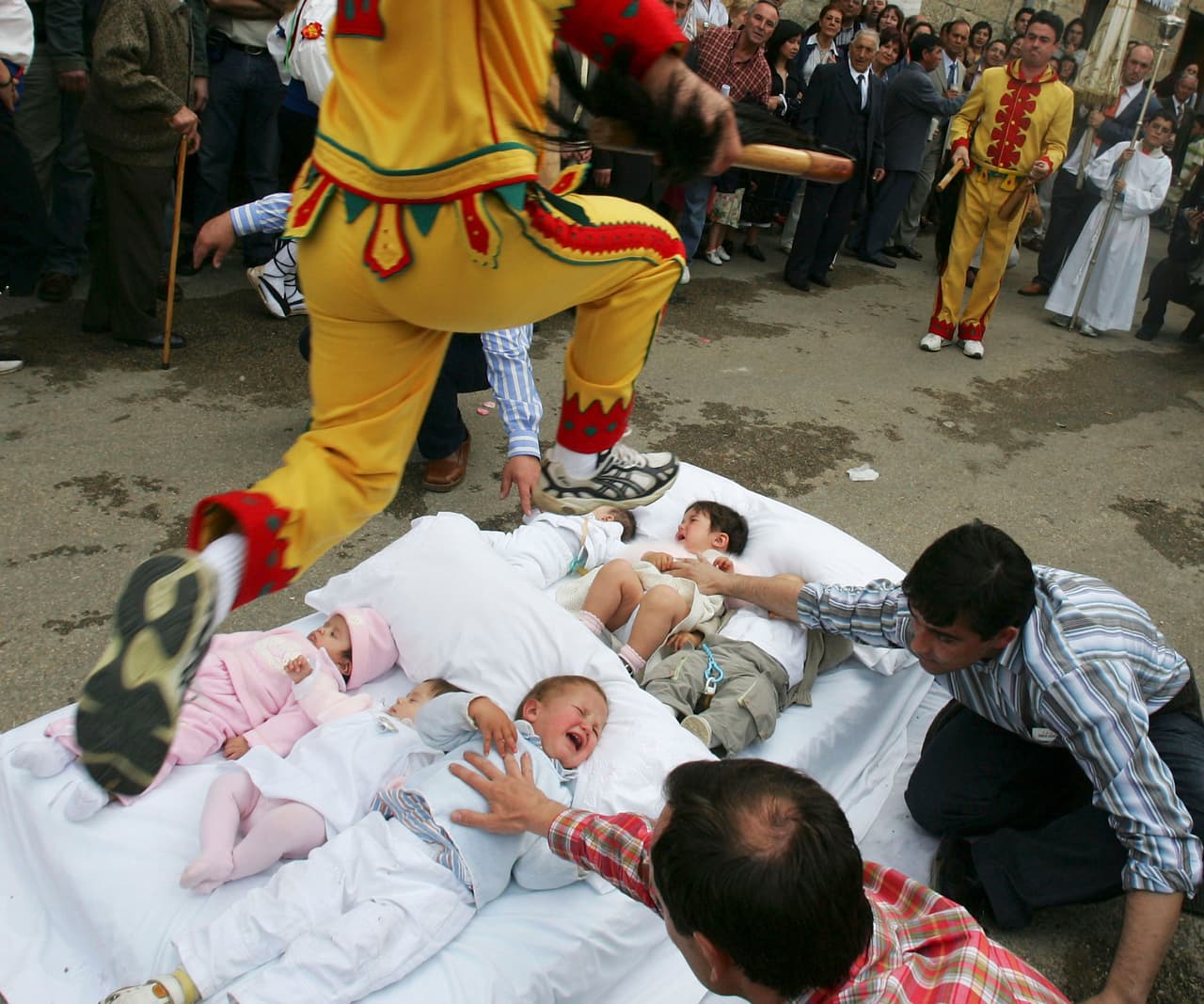 Si Italia posee una rival en cuanto a devoción se refiere, sin duda alguna ese es España, que tanto celo ha demostrado por la fe católica históricamente que en muchas ocasiones ha hecho palidecer a la mismísima Roma. Así lo reflejan sus miles de iglesias y rituales religiosos que se levantan y celebran por toda su geografía, y entre los que pueden encontrarse algunas celebraciones por demás curiosas, como en el caso de El Colacho, una procesión donde no se salta fogatas como en el día de San Juan, ¡sino a los bebes recién nacidos!