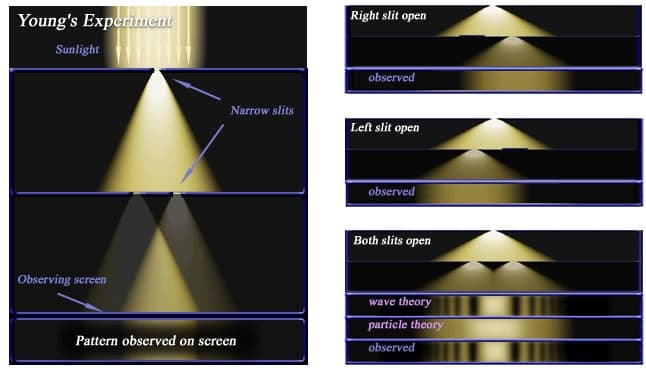 Thomas Young por medio de este experimento comprobó que la luz tiene naturaleza ondulatoria ya que se formaba un patrón de interferencia en una placa fotosensible colocada al final de las dos placas. Sin embargo algo extraño ocurre cuando utilizamos electrones.