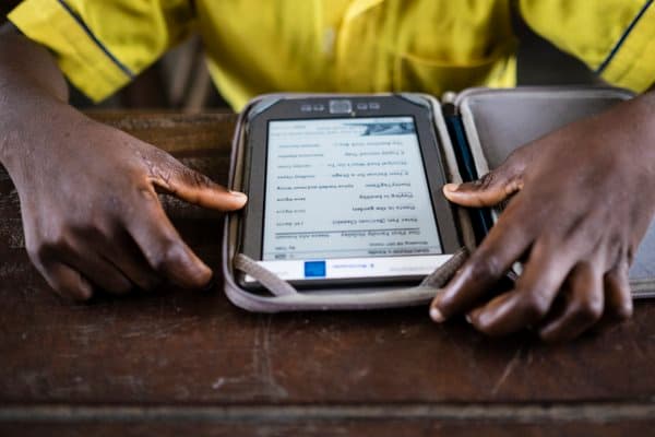 En la ciudad de Rwinkwavu, en Rwanda, se puede ver a los niños trabajando en los campos de yuca, o llenando baldes de plástico para llevar a casa. Pero dentro de la biblioteca de la ciudad, la tecnología abre un nuevo mundo.