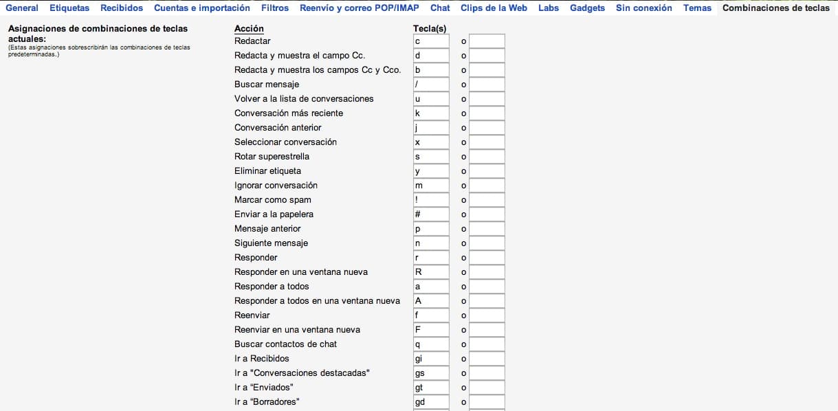 A través de Combinación de teclas Personalizadas, puedes asignar tus propias combinaciones para los diferentes atajos de teclado que ofrece Gmail, lo que facilita memorizarlas.