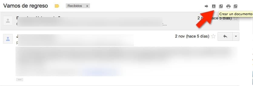 Cada vez que recibas un correo que quieras guardar en forma de documento en Google Drive, simplemente deberás cliquear sobre un pequeño icono que se encuentra en la parte superior de mensaje. De forma inmediata, se abrirá una nueva pestaña en Google Drive y, el contenido del mensaje, aparecerá dentro de un documento de texto.