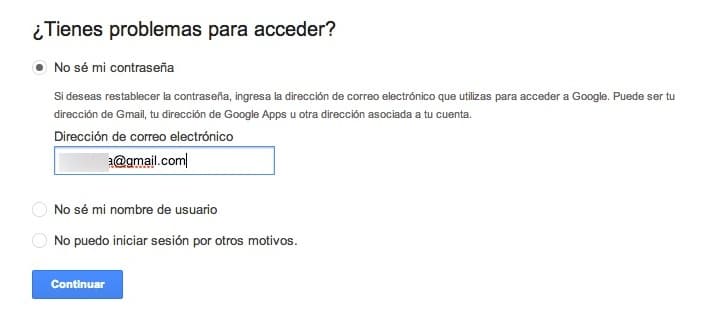 Ve a la página de recuperación de contraseñas: Para partir, escoge No sé mi contraseña e indica tu dirección de correo. A continuación, escribe el password que utilizabas antes.