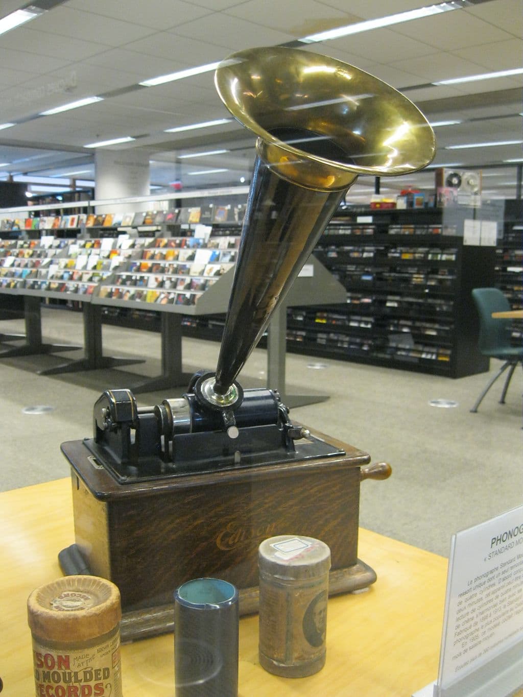 El fonógrafo, en 1877. Fue el primer método de grabación y de reproducción de sonido de la historia y le valió su apodo como “el mago de Menlo Park”.