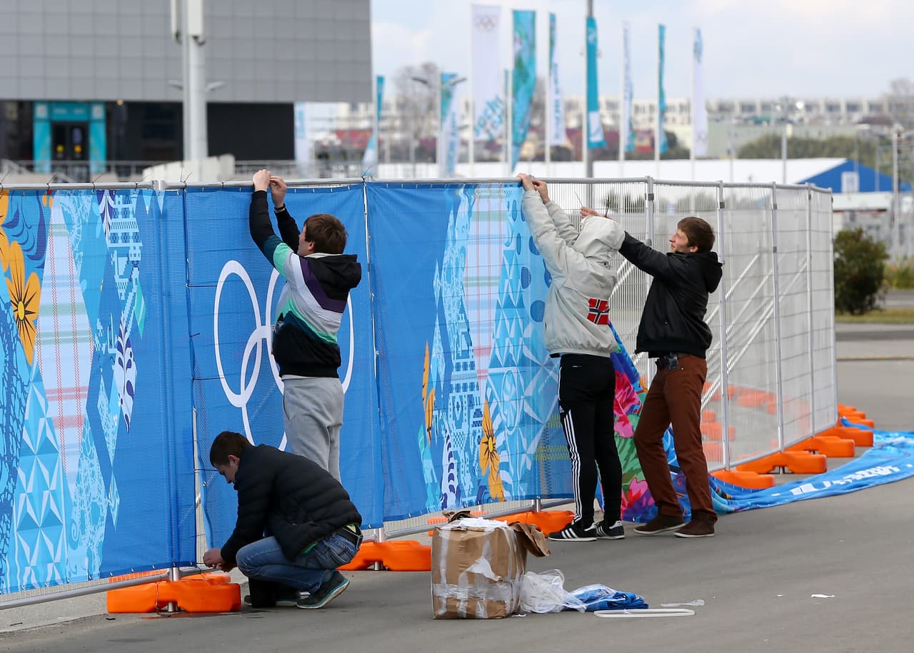 Culminados los discursos se despliega la bandera de los Juegos Olímpicos y se entona el himno oficial.