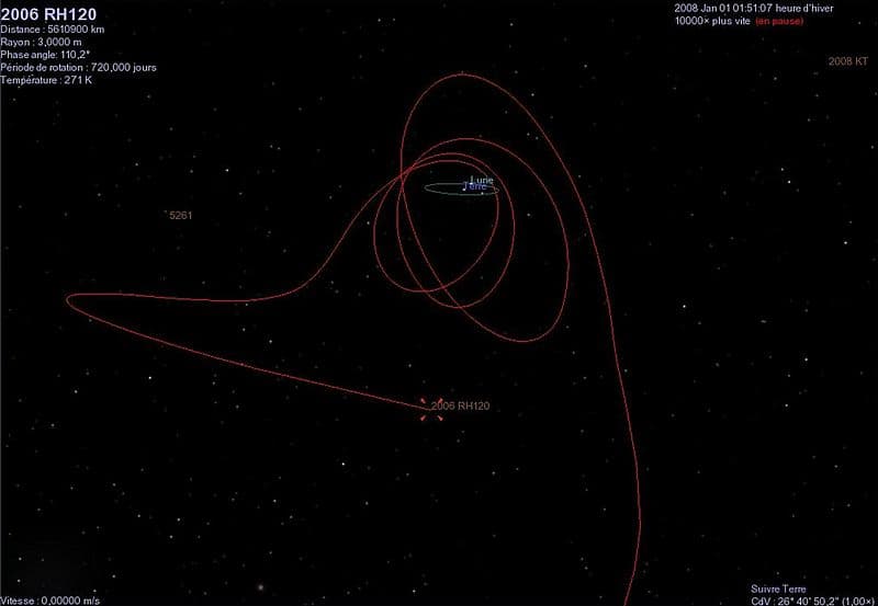 2006 RH120 orbita al rededor del Sol, pero cada 20 años y durante trece meses aproximadamente, entra dentro de la fuerza de gravedad que ejerce la Tierra y modifica su trayectoria, transformándose de forma temporaria en un satélite natural de la Tierra.