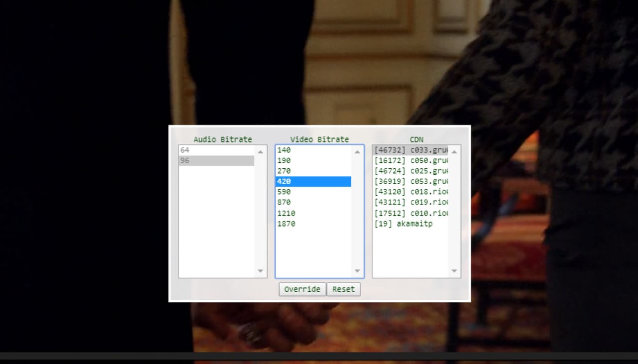 4. Finalmente, selecciona « Override» y estará listo. En el caso de que las alteraciones no te convenzan (la calidad del video será notoriamente más mala) solo debes entrar nuevamente al menú y seleccionar « Reset».