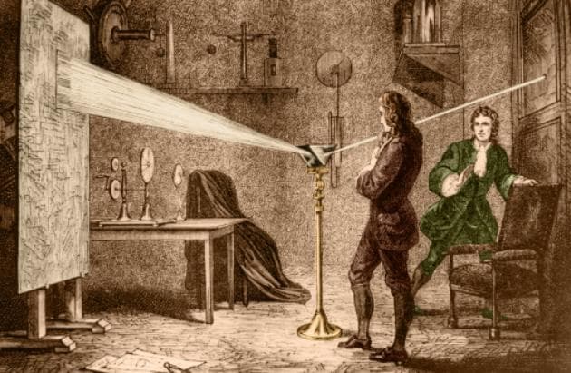 En 1704, en su obra titulada Óptica, Newton cambió la forma en la que se habla y se trabaja sobre la luz, así como del fenómeno de la refracción. Aunque los científicos de la época ya sabían cómo se forma un arcoíris (mediante el reflejo y la refracción de la la luz en las gotas de lluvia) no sabían a qué se debían esos colores tan llamativos.