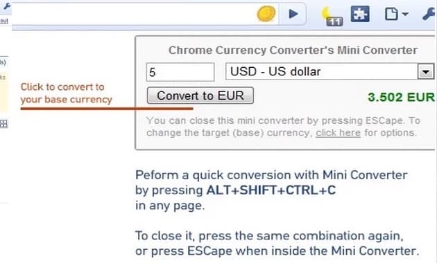 Chrome Currency Converter es una extensión que se ocupa de convertir los precios de los comercios online a la moneda que tu quieras. Así no hay sorpresas y siempre tendrás una idea de cuánto estás gastando al verlo en una divisa que conoces.