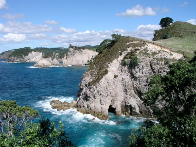 La península Coromandel es un área muy bonita y pintoresca mayormente turística, con una playa de aguas calientes ideal para pasar un día de relax en las piscinas naturales que se forman cuando la marea está baja.