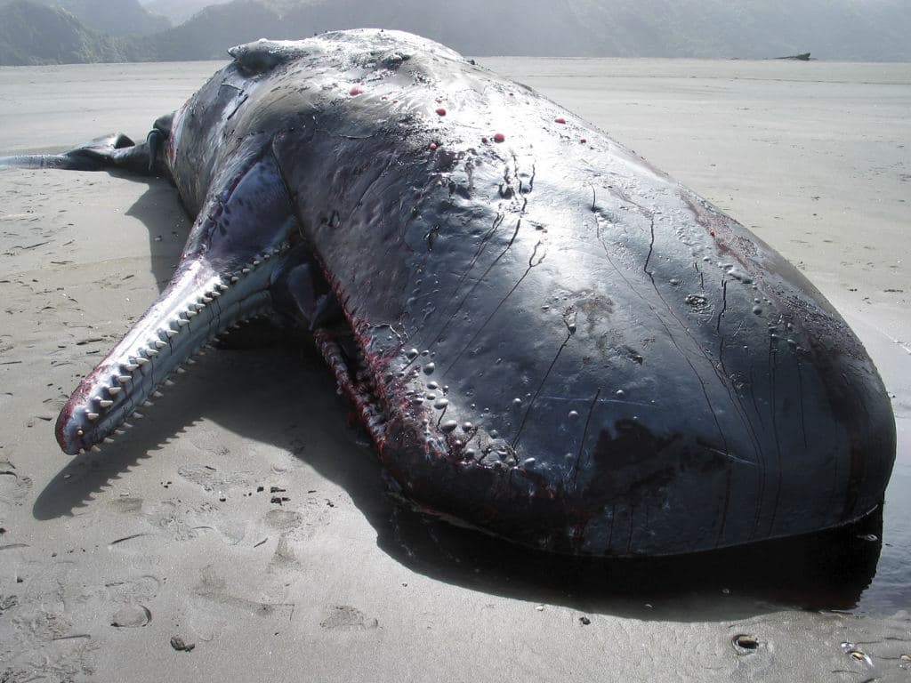 Cuando se encuentra una ballena muerta en la playa es necesario sacarla de allí, ya que al perecer su cuerpo empieza a descomponerse acumulando en gas en su interior, pudiendo incluso explotar.