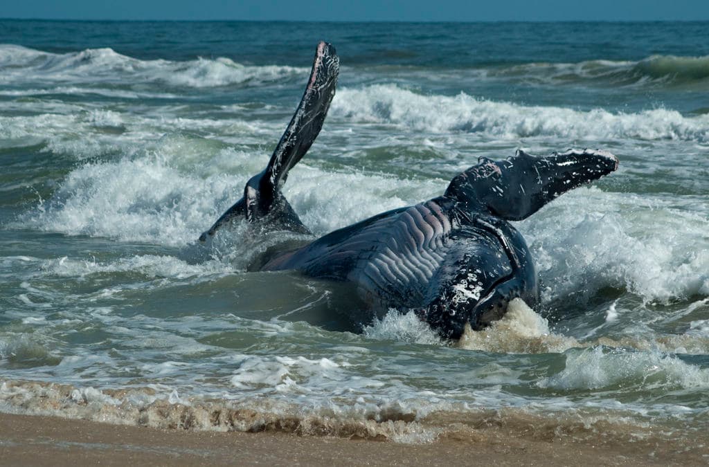 Muchas de las ballenas que podemos encontrar varadas en las playas llegan ya muertas y es la corriente la que arrastró su cuerpo.