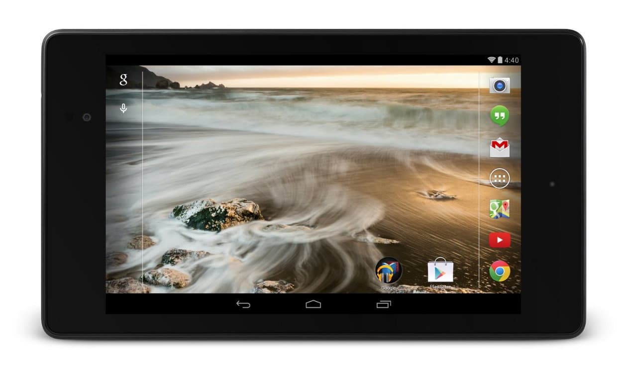 Al desembalar la tablet Nexus 7, lo primero que vemos es que sólo están situados en uno de sus flancos los clásicos botones de encendido y de regulación del volumen. No hay botones para acceder a los programas o a los menús. Tendremos que pulsar sobre los iconos que se visualizan en la parte inferior la ventana de inicio. La ventaja de esta disposición: cuando se pivota la tablet, la visualización también pivota.