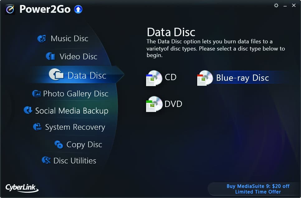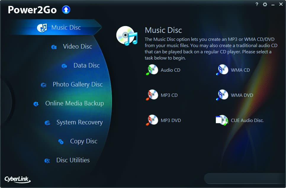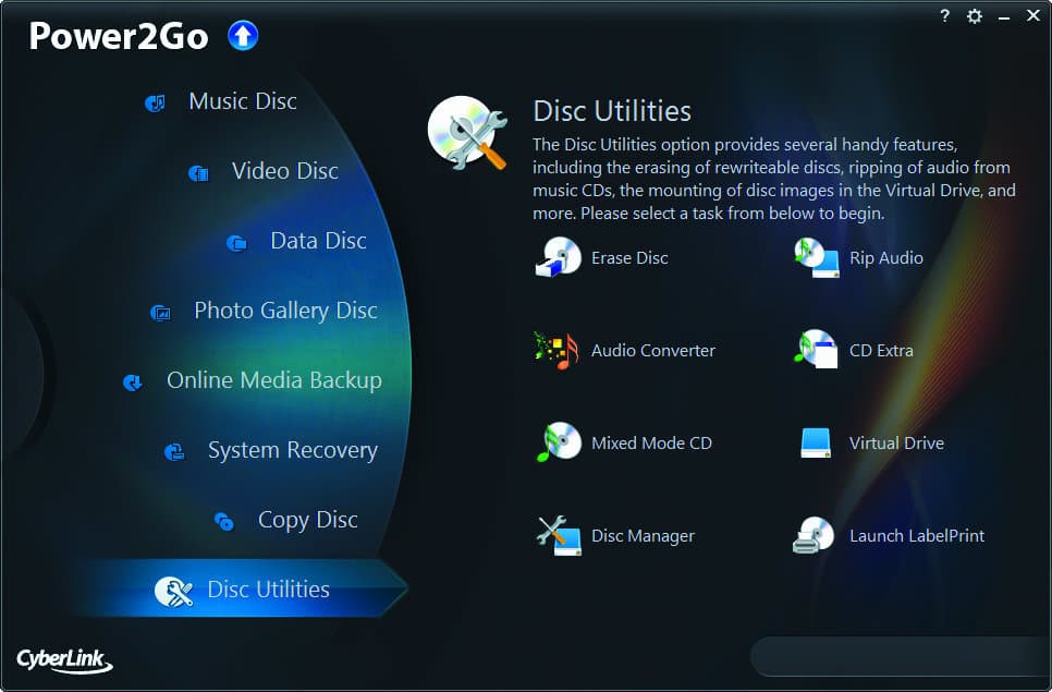 Power2Go es un quemador de Cyberlink muy potente y creado para suplir una amplia variedad de actividades desde nuestra PC. Dentro de sus funcionalidades incluye el grabar discos de archivos, música, video, recuperación de sistema, copia de discos, galería de fotos y demás.