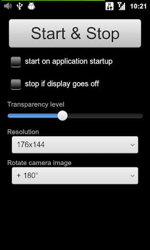 Además de esto también podemos rotar la imagen de cámara que aparece en la pantalla, el tamaño de la imagen e inclusive podemos hacer que la aplicación se inicie con el encendido del móvil.