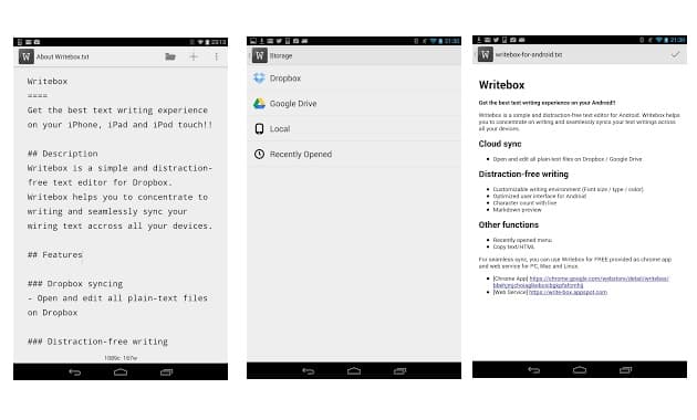 No es posible comparar Writebox a los otros procesadores de texto conocidos. Es una aplicación hecha para coordinar el trabajo en equipo entre varios usuarios. Coordina texto plano con todas las plataformas que hemos nombrado. Esta es su mejor virtud.
