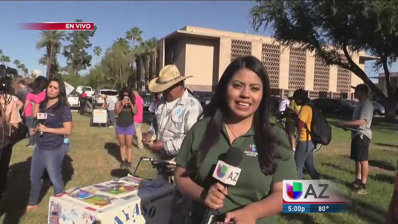 Activistas y miembros de la comunidad se unieron a la marcha de este 1 de mayo en la capital de Arizona y le piden al Sheriff del Condado Maricopa, Paul Penzone, que termine con la colaboracion que tiene con ICE en sus cárceles.