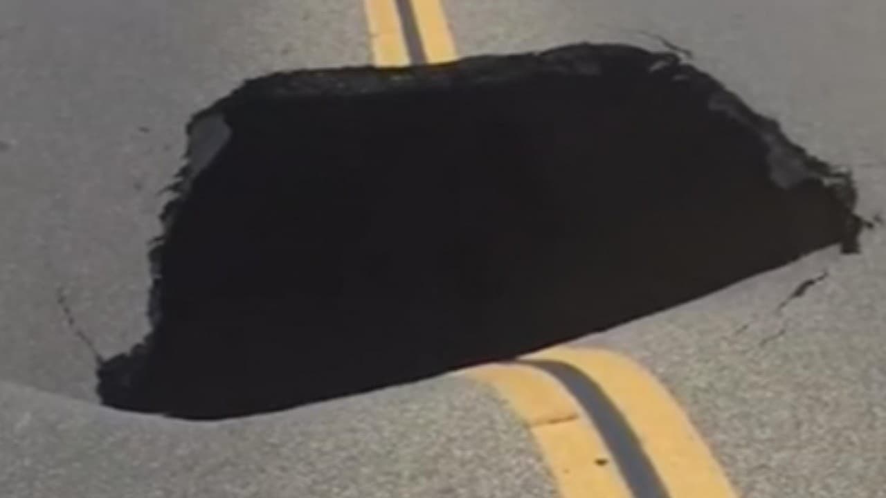 Cámaras captan cómo un enorme hueco se abre en carretera de California