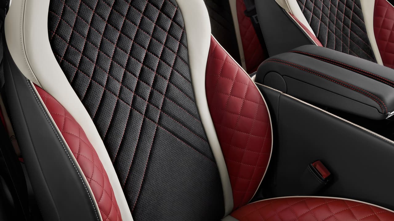Abunda el cuero y alcántara por dentro, además de fibra de carbono con a con acabado “a cuadros”.