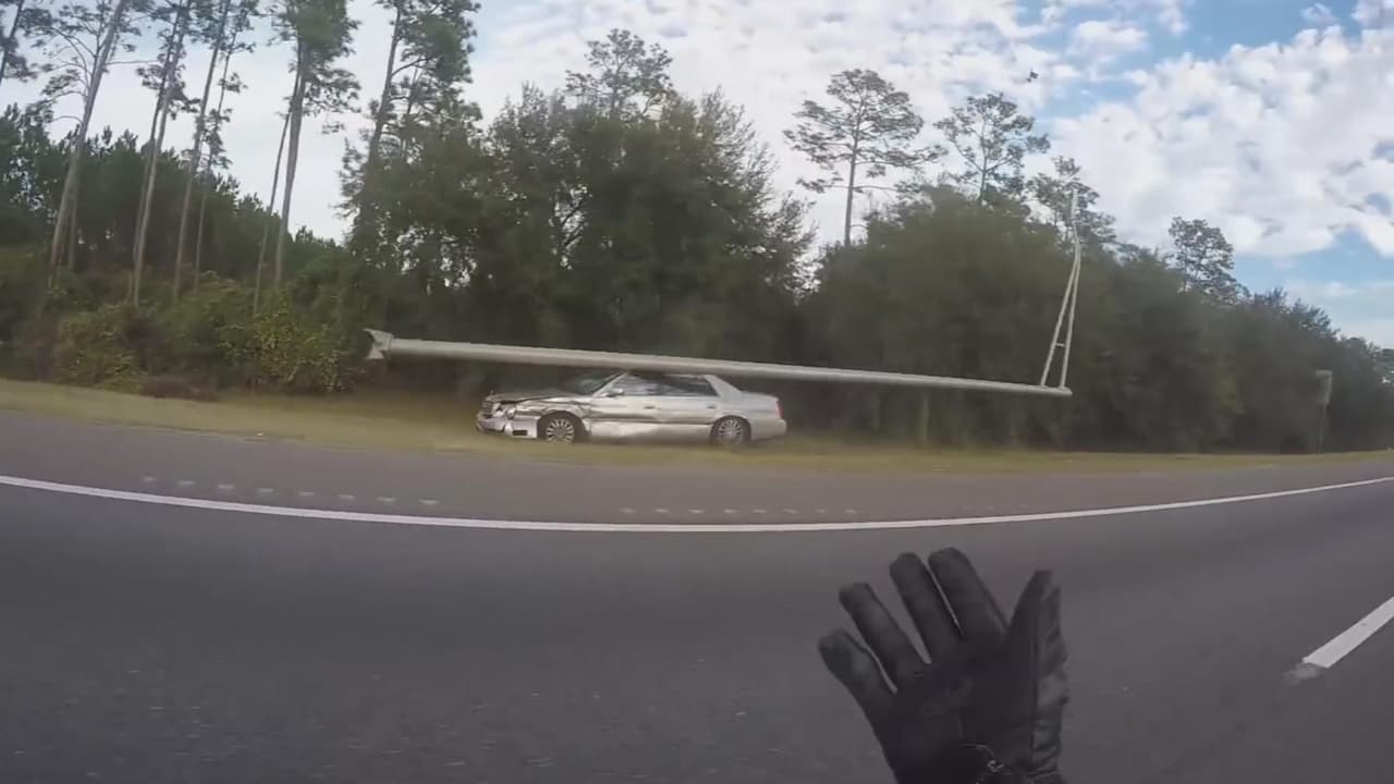 Un motociclista de Jacksonville, Florida capturó el momento que el conductor perdió el control de su vehículo y golpeó varias barreras.