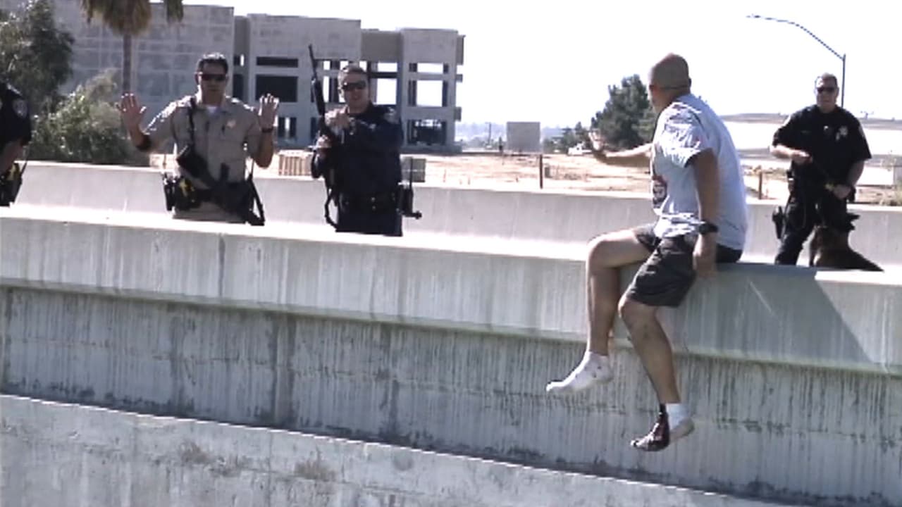 Cuando el hombre se encontraba sobre la autopista 215, salió del auto y amenazó con tirarse de un puente. El incidente duró cerca de una hora.