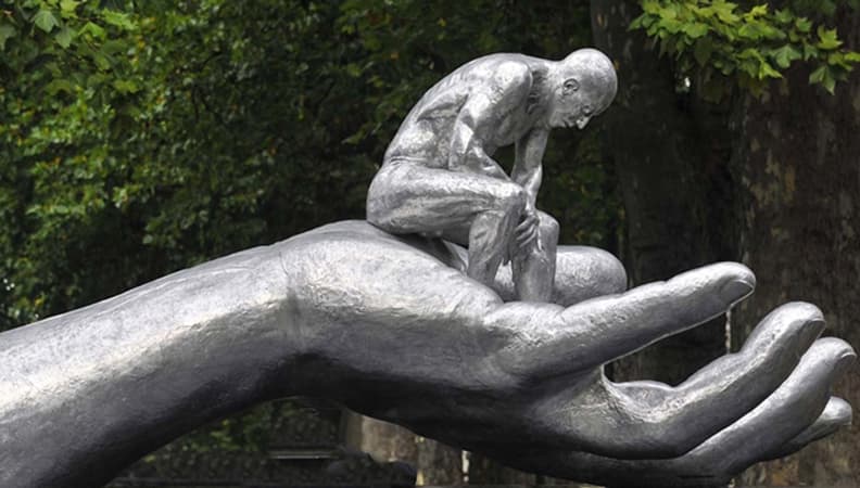 Una monumental escultura, hecha de aluminio y titulada " La Mano de Dios", mide cuatro metros de largo y pesa 400 kilos. Esta escultura sobre la búsqueda de Dios pertenece a Lorenzo Quinn, hijo del actor Anthony Quinn. La obra representa a un hombre desnudo y pensativo que descansa sentado en una enorme mano. Quinn, que reside y tiene su estudio en Barcelona, se inspiró en un conocido poema llamado 'Huellas', de un escritor anónimo, que trata sobre un hombre moderno que busca en la mano de Dios el confort y la paz que necesita en un momento difícil.