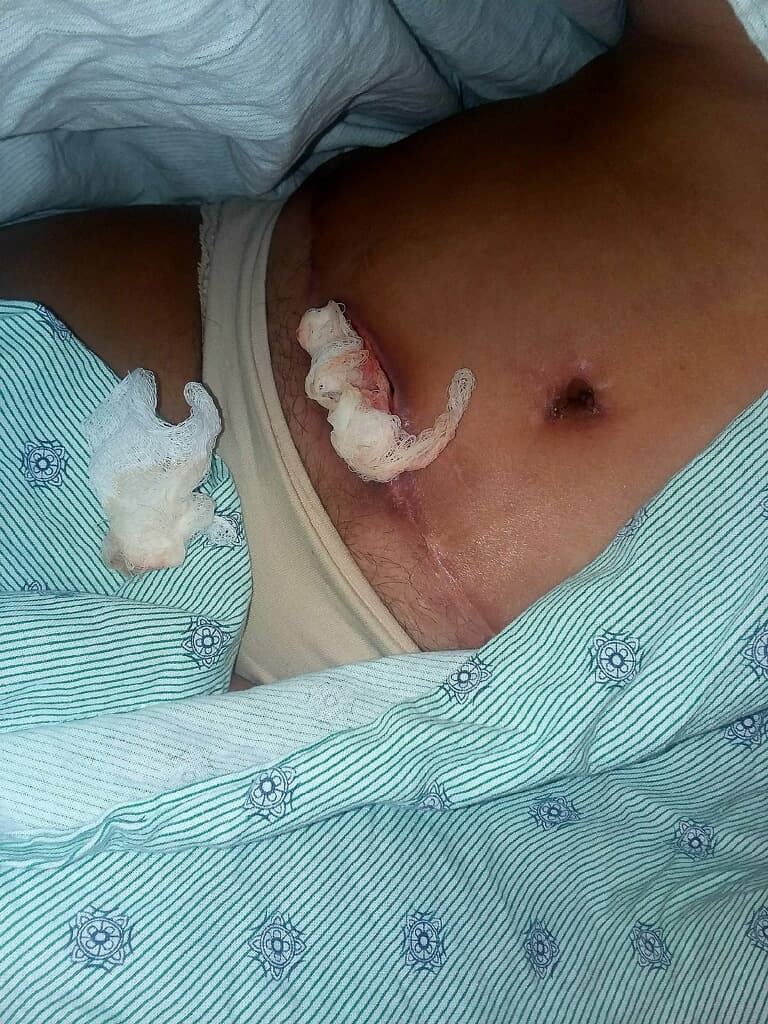 “Luego de que se me abrió la herida, fui a la clínica donde me operaron, pero no me atendió el doctor, me atendió una enfermera y ella misma me dijo que me iba a abrir. No fue sino hasta el mes que me vio un doctor”, cuenta Ledón.