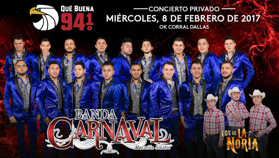 ¡La Que Buena 94.1 te espera este 8 de febrero en concierto privado con Banda Carnaval y Los De La Noria!