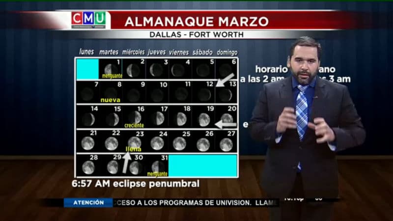 Marzo con mucho movimiento astronómico: llega la primavera, cambiamos la hora y tenemos un eclipse penumbral de luna, además la semana que viene regresan las lluvias. Meteorólogo Albert Martínez.