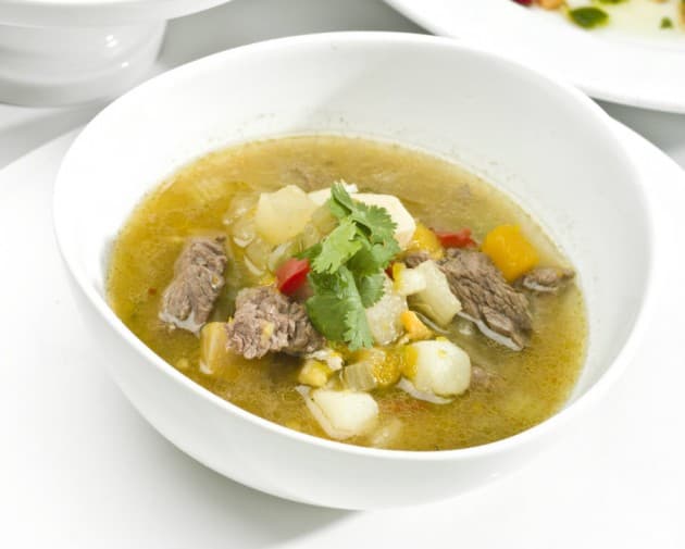 El sancocho es un plato típico de Colombia. Se trata de una sopa que contiene distintos tipos de carnes, tubérculos, verduras y también condimentos.