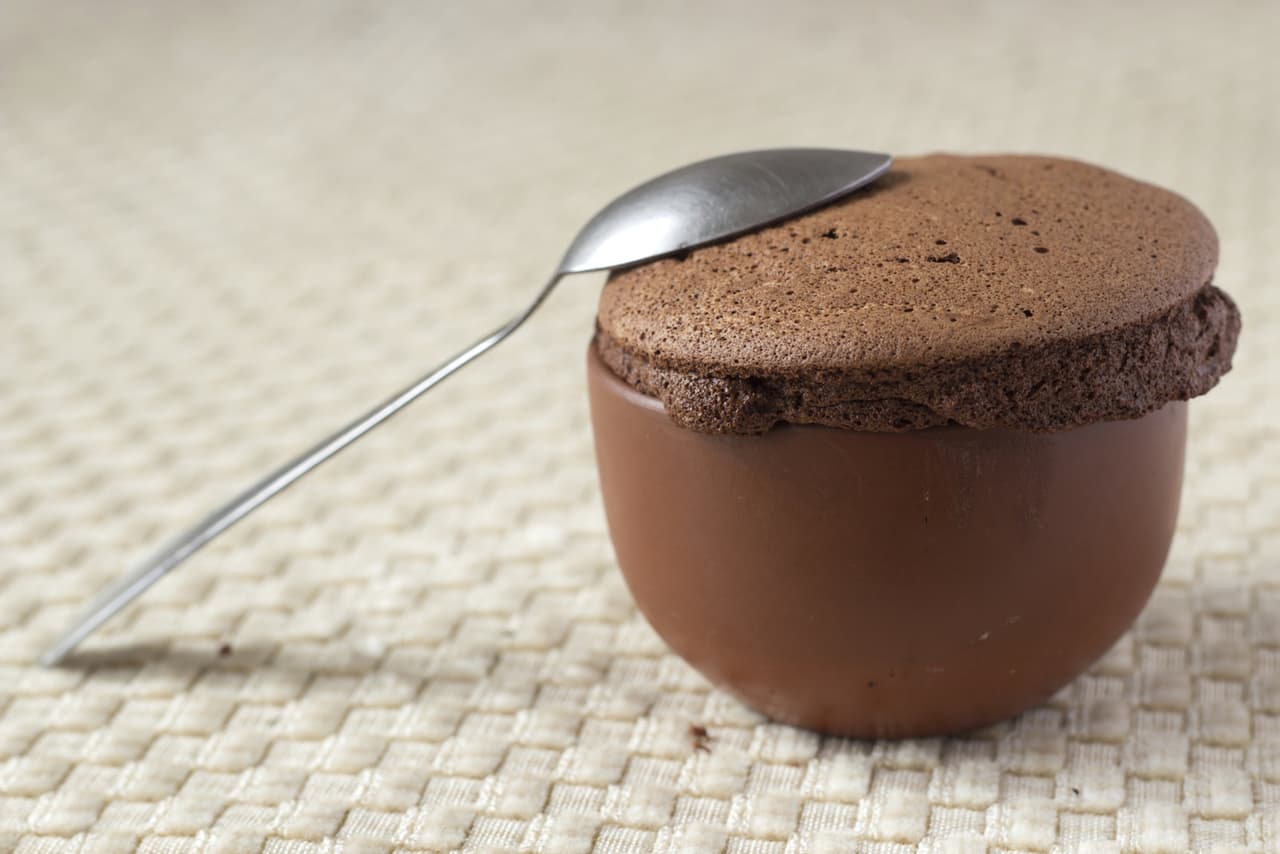 No puedes decir que no te he mostrado tragos y postres en diferentes formatos. Aquí tengo un exquisito soufflé de café y praliné. ¿Te animas a probarte en la cocina con este postre?