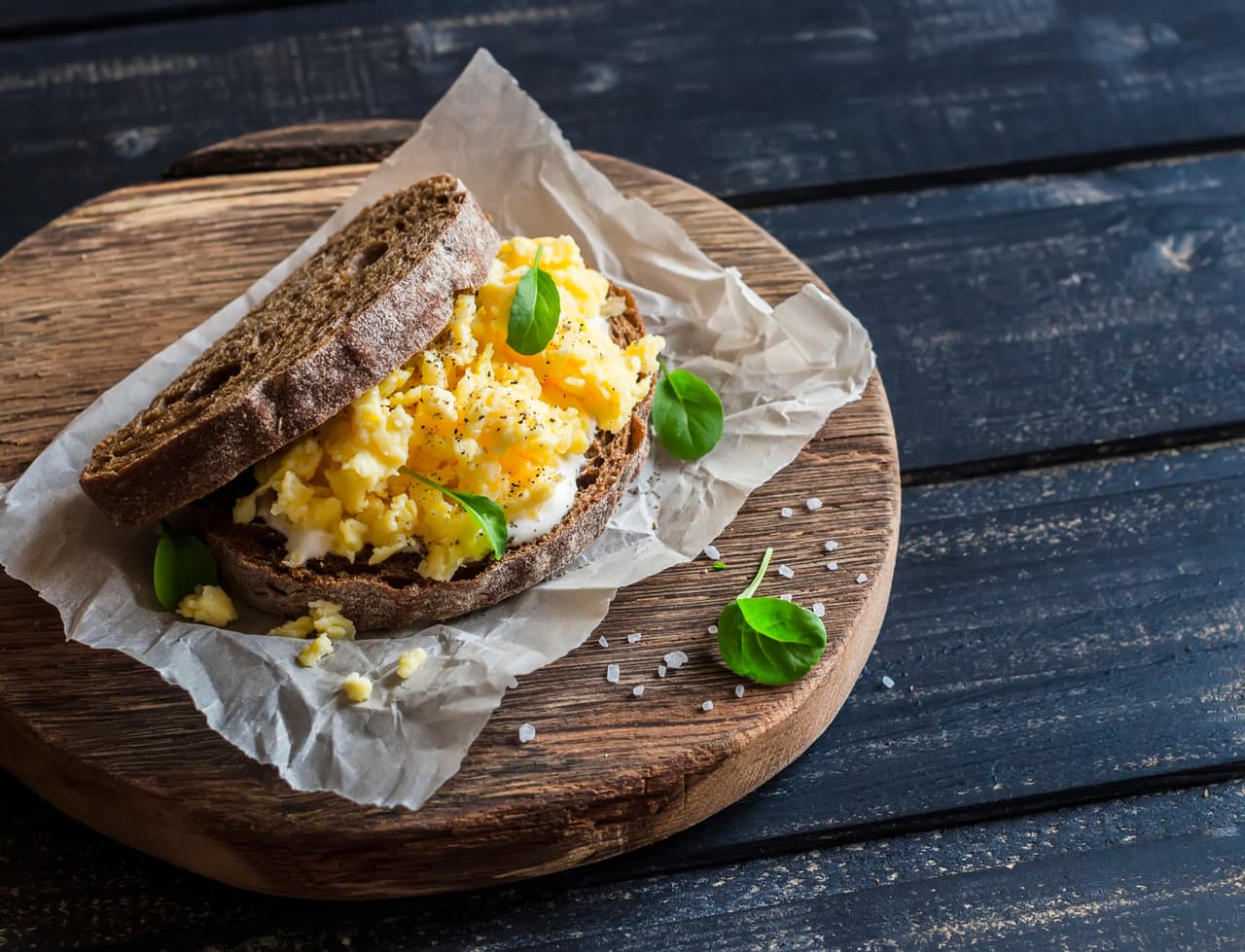 Otra variación para hacer un sándwich es mezclar dos huevos duros con mayonesa, pimienta y sal, y servirlo con pan integral. Muy rápido y nutritivo. Acompañalo con la fruta que más le guste para el postre.