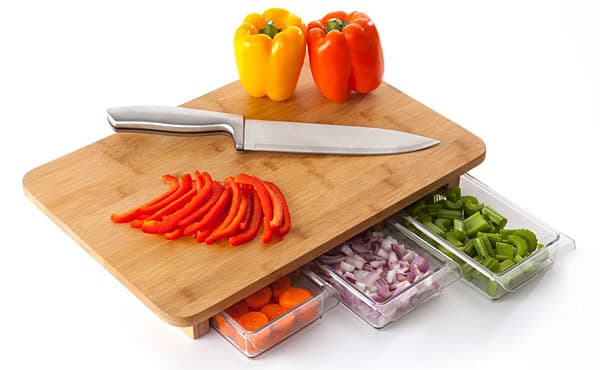 Pica los alimentos para tus preparaciones y guarda cada uno en su cajón hasta el momento de usarlo. Esta tabla de picar es muy práctica.