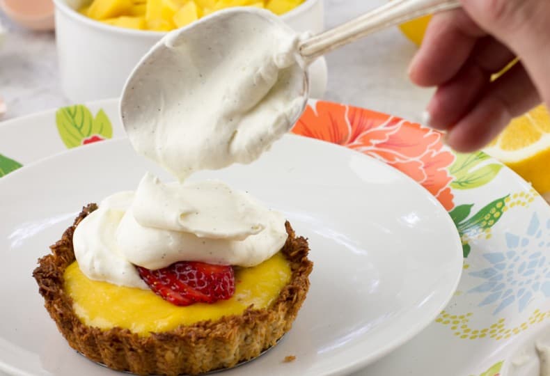 Esta tarta de mango y coco es el postre perfecto para cualquier comida, porque además de que no tiene gluten también es apta para diabéticos.