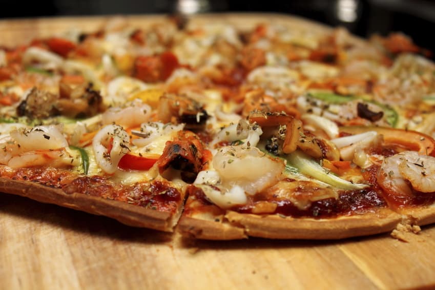 Prueba lo mejor del mar combinado con lo mejor de la tierra en esta sabrosa pizza de mariscos.