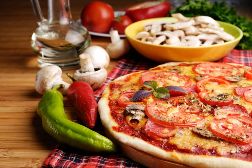 Si bien la pizza de por sí es vegetariana, la idea de esta pizza vegetariana es combinar una masa crujiente y sabrosa con saludables vegetales. ¡Una gran idea!